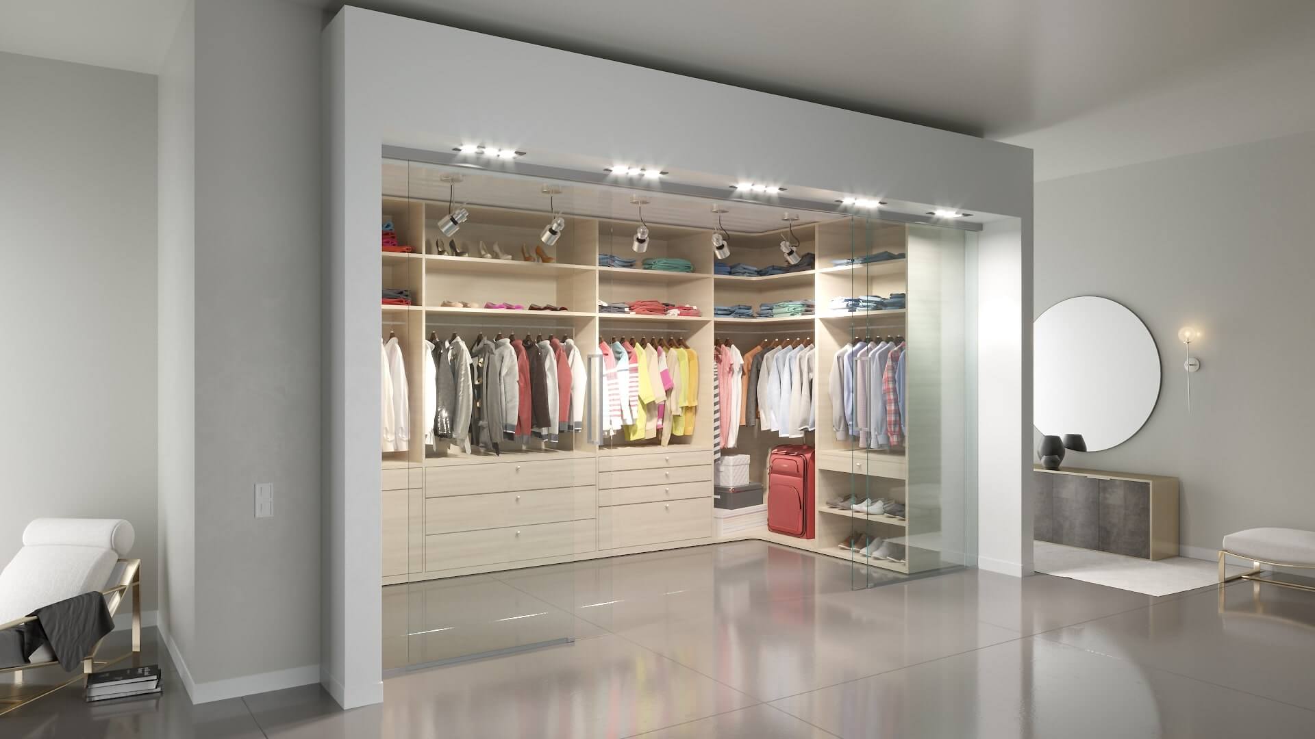 Each frameless setup is customized to fit your layout and aesthetic. It offers a clean, minimalist look with soft-close doors, concealed hardware, and a range of locking options.